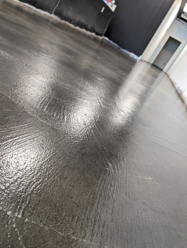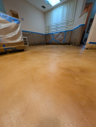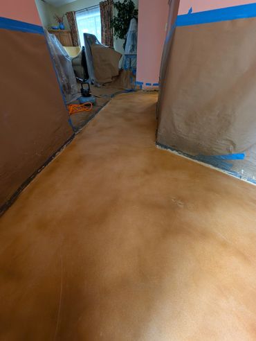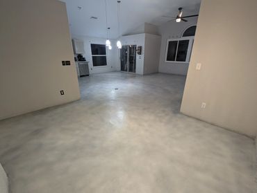 After proper preparation, a thin but resilient concrete overlay is applied, creating a smooth, blank canvas ready for staining.