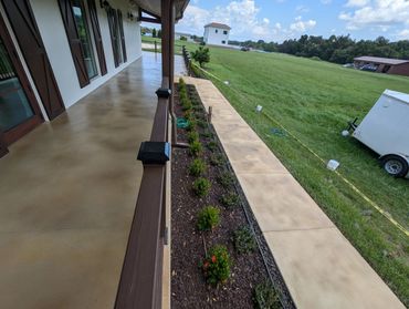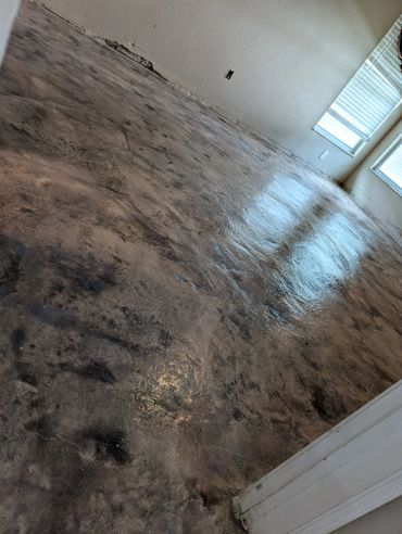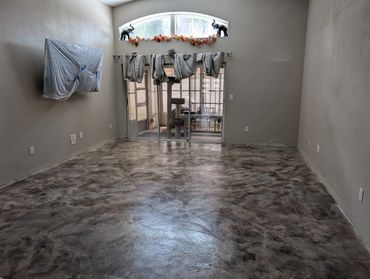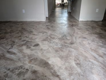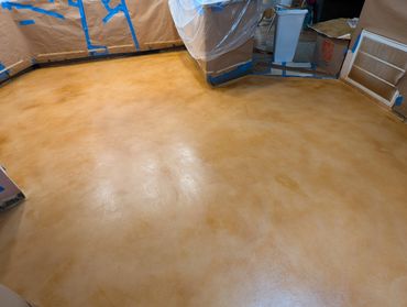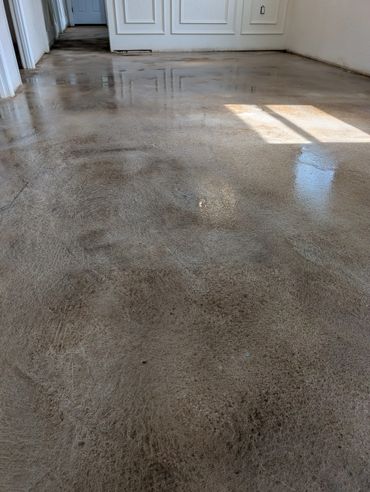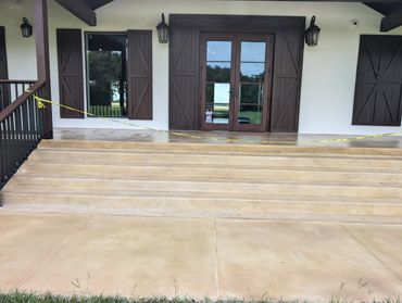 Once the texture is in place, we apply the concrete stain using a variety of techniques to attain the desired color scheme.
